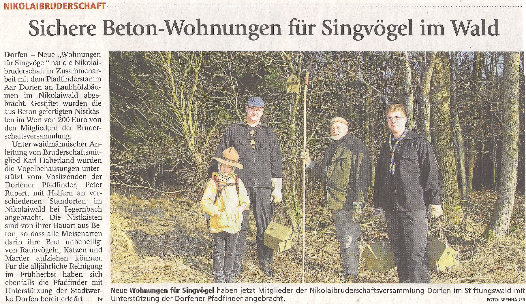 Blog Sichere Beton-Wohnungen für Singvögel im Wald 6.4.2011 von Muuusch Zeitungsartikel Münchner Merkur 26. März 2011